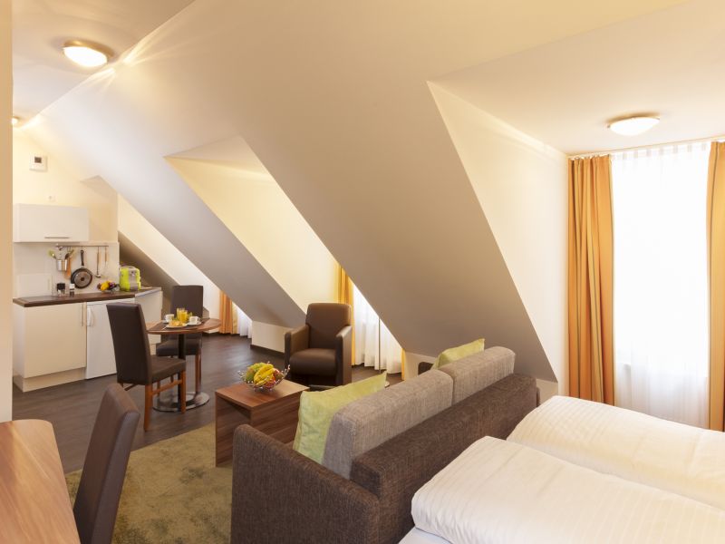 Fühlen Sie sich ganz wie Zuhause. Vielleicht sind Sie zum Arbeiten nach München gekommen? Im Wohnbereich Ihrer Suite haben Sie die nötige Ruhe und eine kreative Umgebung. Die Zimmer in unserem frisch renovierten Hotel sind auch zur Straße hin sehr leise und verfügen über extra schallgedämpfte Fenster. Und natürlich – zum Relaxen und Urlaub machen sind Sie auch über längere Zeiträume bei uns ideal aufgehoben.
